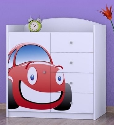 Komoda do dětského pokoje 4 šuplíky a dvířka Auto